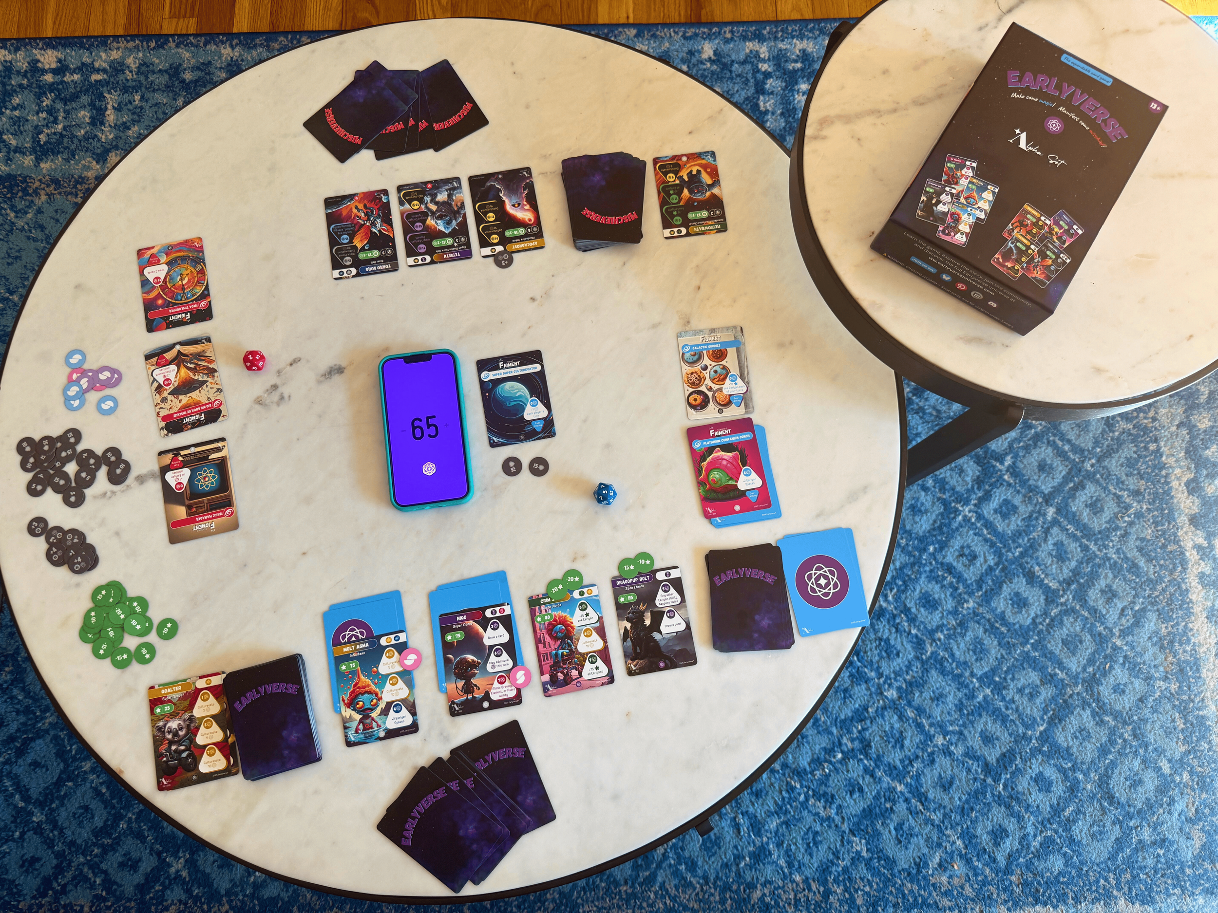 The Earlyverse Alpha Set is being sold through The Game Crafter, a game building platform that makes it easy for independent makers to create and sell their games. Since your game is coming directly from The Game Crafter, purchasing one game at a time is more expensive. Even at-cost. The more you make, the less expensive they are.